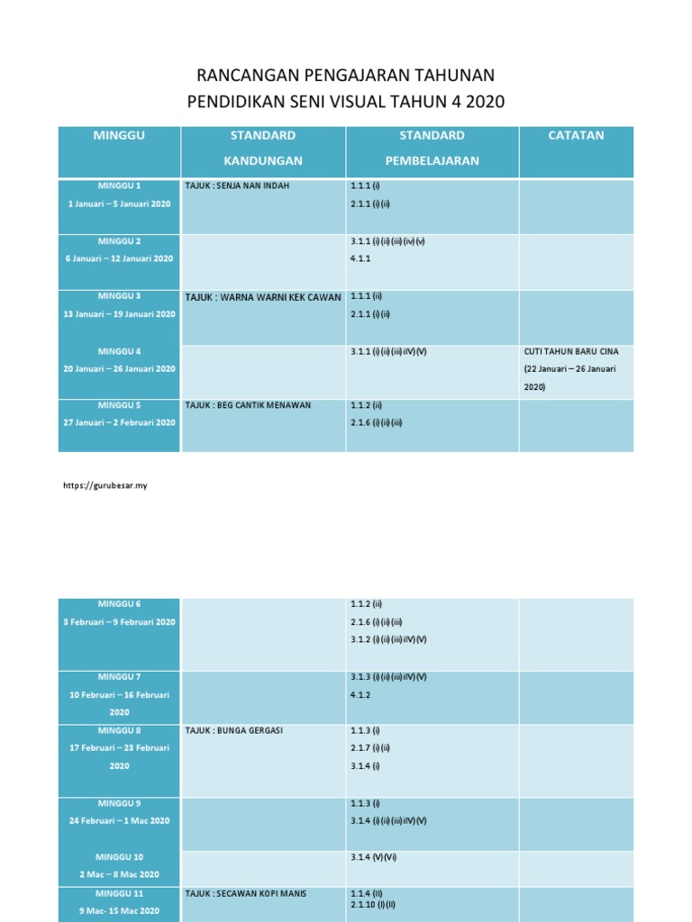 Download Rpt Pendidikan Seni Visual Tahun 4 Hebat Rancangan Tahunan Psv Tahun 3 Skoloh
