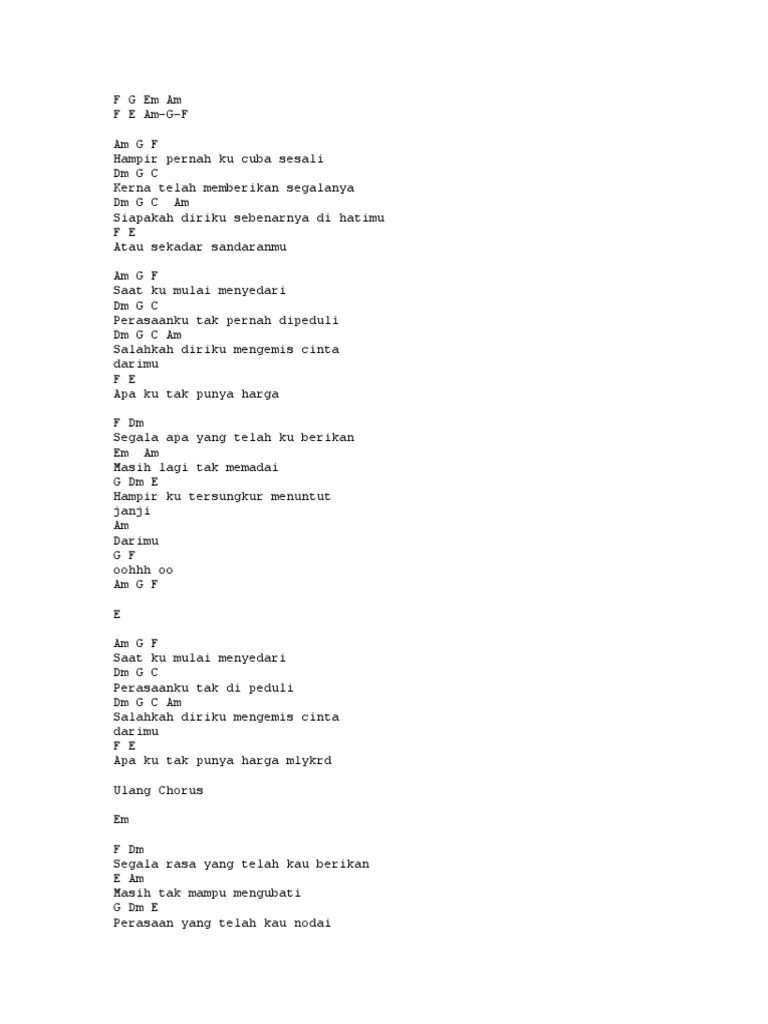 Malay Gitar Kord Haqiem Rusli Segalanya Chord