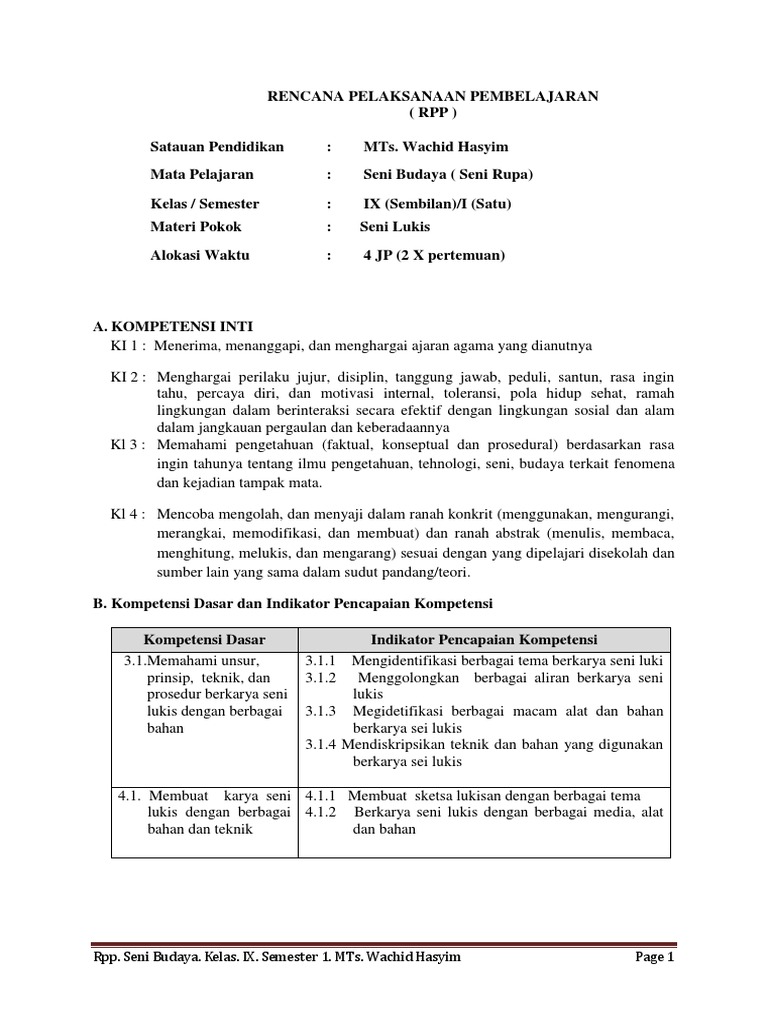 Rpp K 13 Kelas 9 Kd 3 1 Seni Lukis