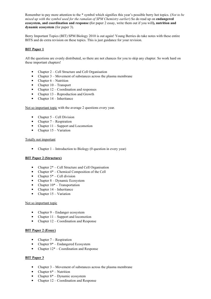 Biology 1 Biology 1 2 Spm Examination Techniques