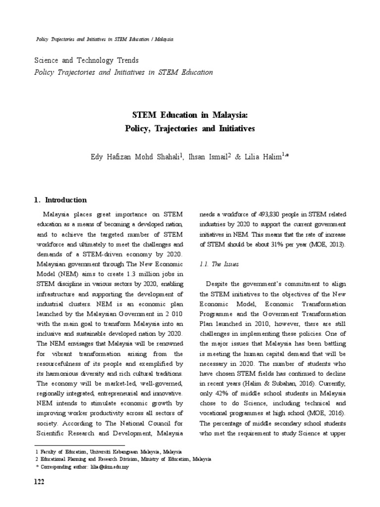 Pdf Stem Education In Malaysia Policy Trajectories And Initiatives Faiz Daud Academia Edu