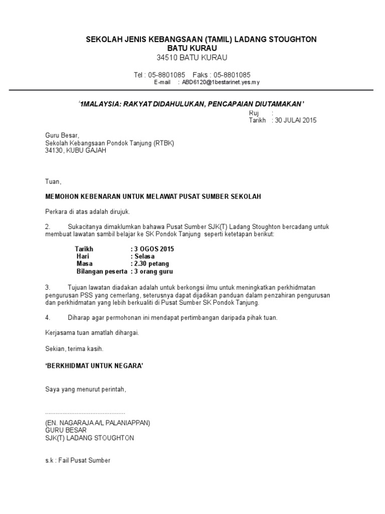 Contoh Surat Lawatan Penanda Aras Ke Sekolah