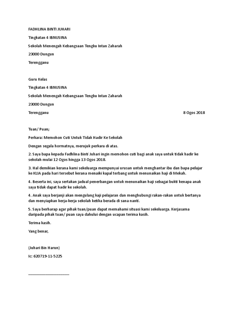 Surat Rasmi Untuk Permohonan Cuti Sekolah 2018 Surat Rasmi Untuk Permohonan Cuti Sekolah Tahun Surat Rasmi Untuk Permohonan Cuti Sekolah Deepavali Surat Ra Surat