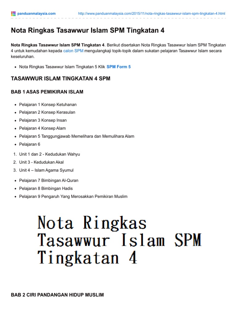 Nota Ringkas Tasawwur Islam Spm Tingkatan 4