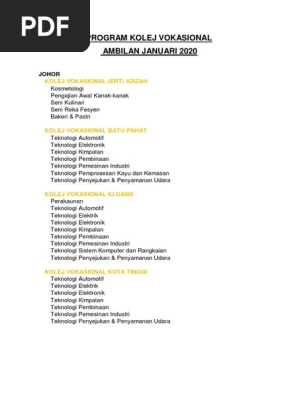 Senarai Kolej Vokasional Dan Kursus Yang Ditawarkan Di Kv