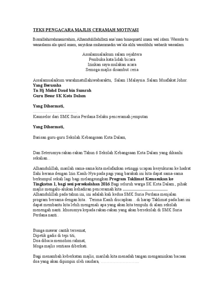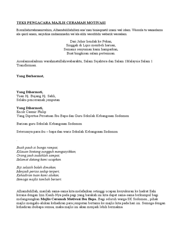 Teks Pengacara Majlis Ceramah Motivasi Docx