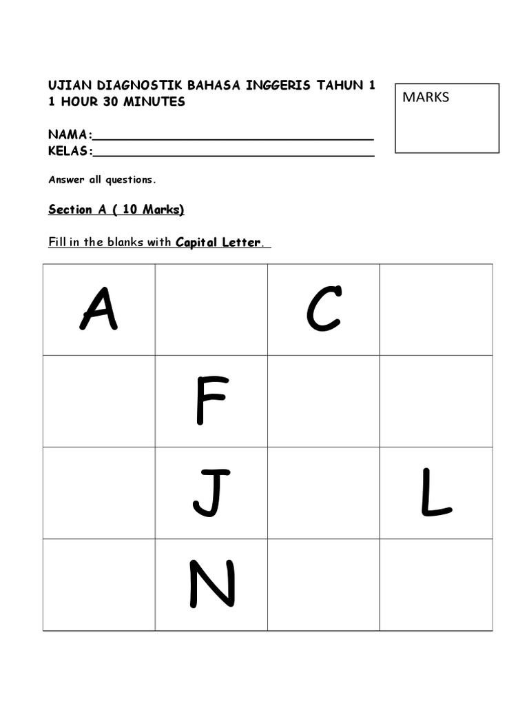 Ujian Diagnostik Bahasa Inggeris Tahun 1 Pdf