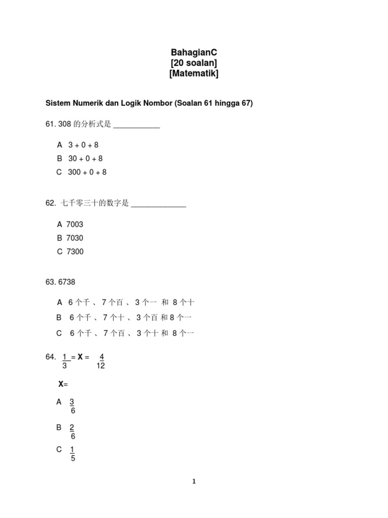 Contoh Soalan Matematik Tahun 3 Sjkc Soalan L