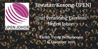 Jawatan Kosong Unit Perancang Ekonomi Negeri Johor Upenj 14 Disember 2016