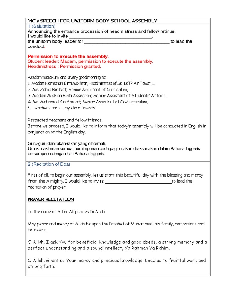 Mc Script For Uniform Body Morning Assembly Religious Behaviour And Experience